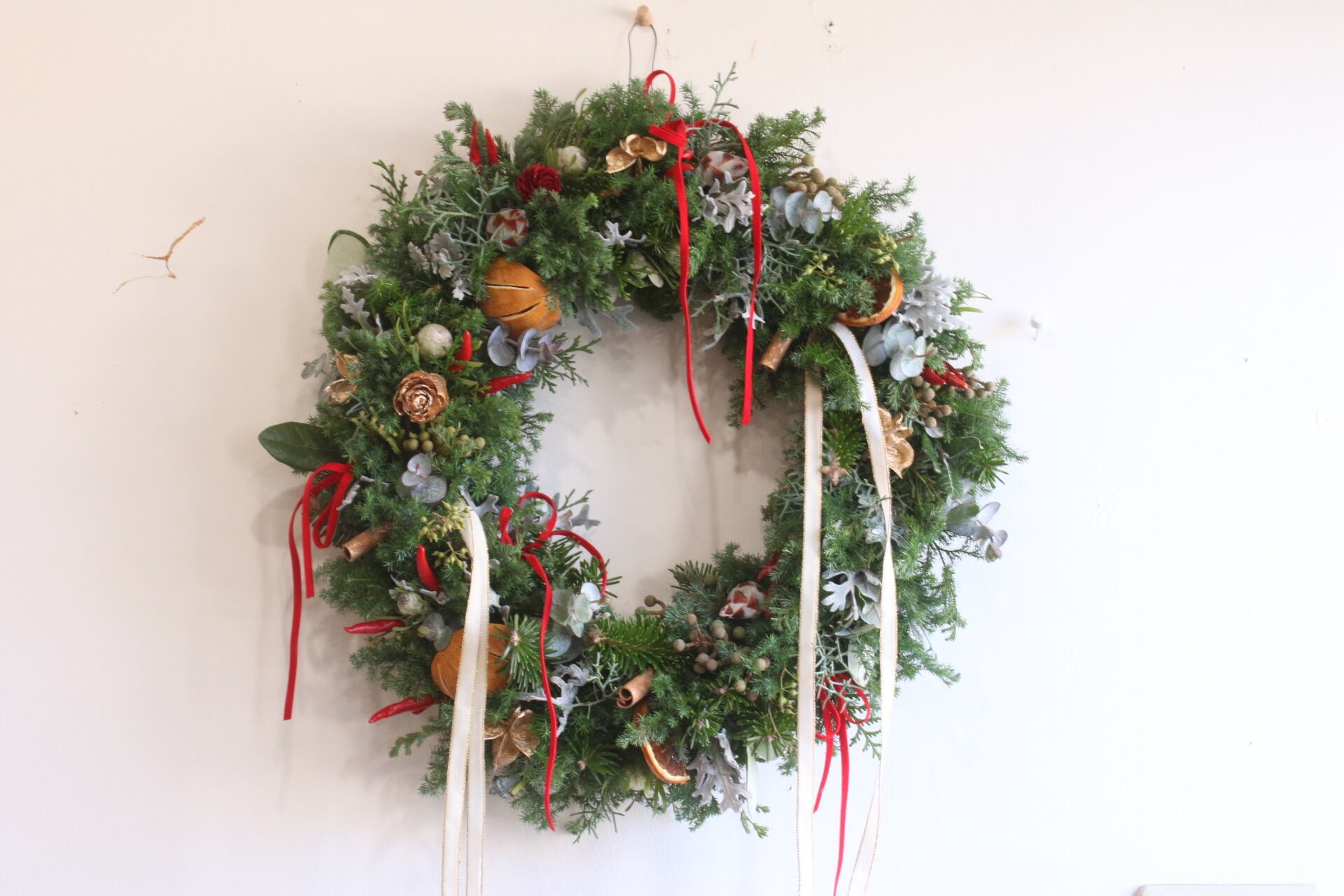 生のグリーンと実もので作ったリースです。